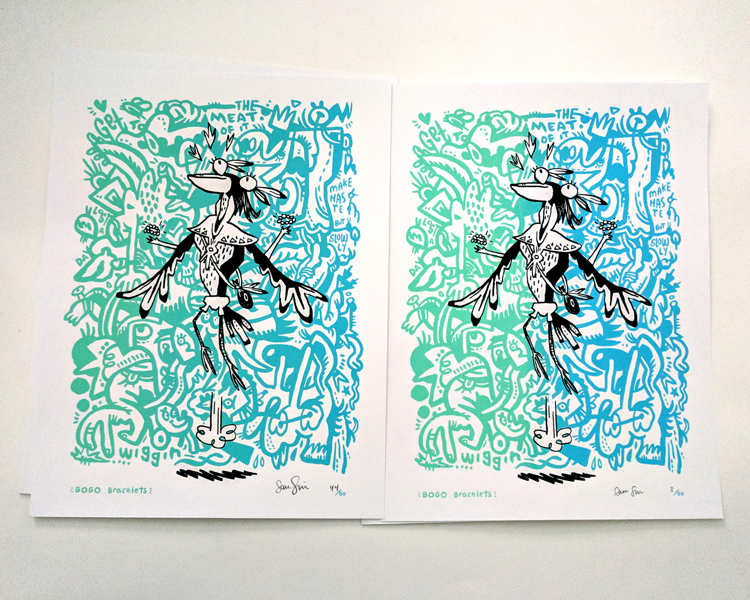 Standard photo size so finding a frame will be easy. The under layer is a split fountain / blend of colors, making each print unique! Ships flat.